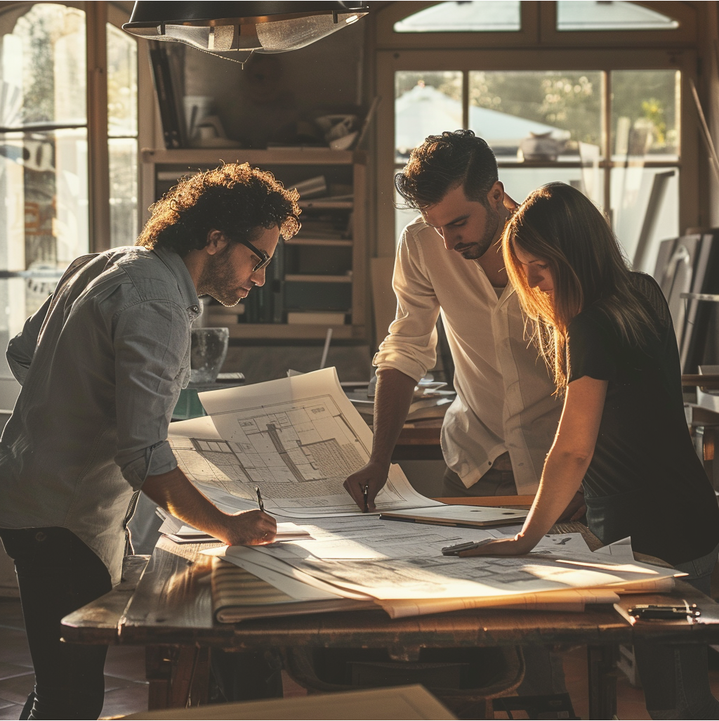 We design interiors in line with the identity of our collections, select materials, create immersive renderings and take care of the supply and installation of furniture.